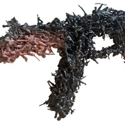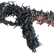 ルーマニア製のコンパクトなAK-47アサルトライフルのレプリカ。アメリカの現代都市文化を象徴する存在です。ここでは、このAK-47がミニチュア兵士へと完全に復元されています。整列、接着、圧縮されたこれらの兵士たちは、暴力の象徴であると同時に、生存、アイデンティティ、そして抵抗の象徴ともなったライフルのフレームを形成しています。