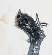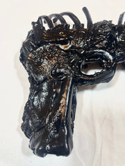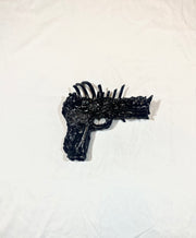 Faite de côtes, de crânes et d’ossements, cette arme macabre rappelle que la guerre n’est pas une invention de l’homme elle est gravée dans sa nature. Pièce Unique assemblé par Svhaine Alvarez