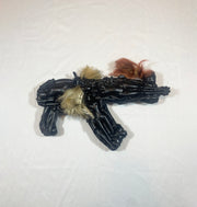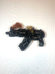 Sculpture d'assemblage réalisée à la main à partir de jouets recyclés. Structure renforcée et finition peinture d'art. En raison de la création artisanale, chaque pièce présente des variations uniques dans la composition.